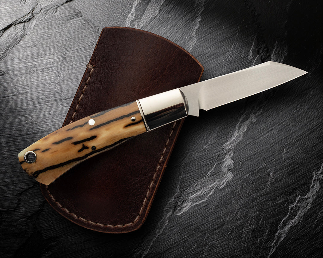 Handmade custom by Alexandr Poroshyn exactly as it arived from him. Never carried, never cut. Only handled it about 5 times. Otherwise it's been safely in its leather pouch.